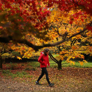 10月27日,游客在英國格洛斯特郡的韋斯頓伯特植物園欣賞秋景。