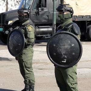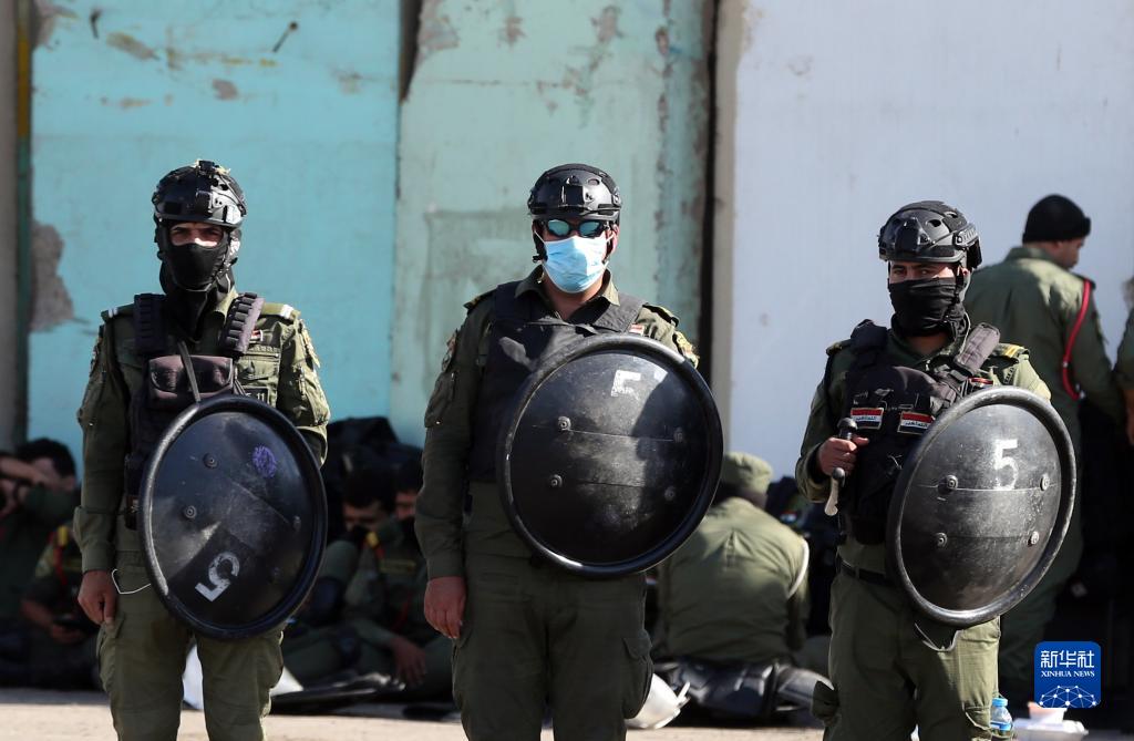 11月7日,防暴警察在伊拉克巴格達“綠區”附近警戒。
