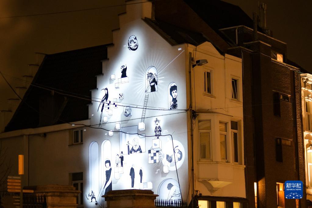 這是11月11日在比利時(shí)根特燈光節上拍攝的燈光藝術(shù)作品。