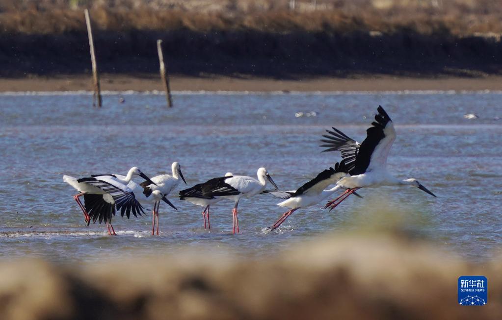 近日,大批南遷的東方白鸛飛抵河北省唐山市曹妃甸濕地休息、覓食。據介紹,該地2020年以來(lái)不斷加強濕地保護力度,曹妃甸濕地逐漸成為國家一級保護動(dòng)物東方白鸛的重要棲息地。