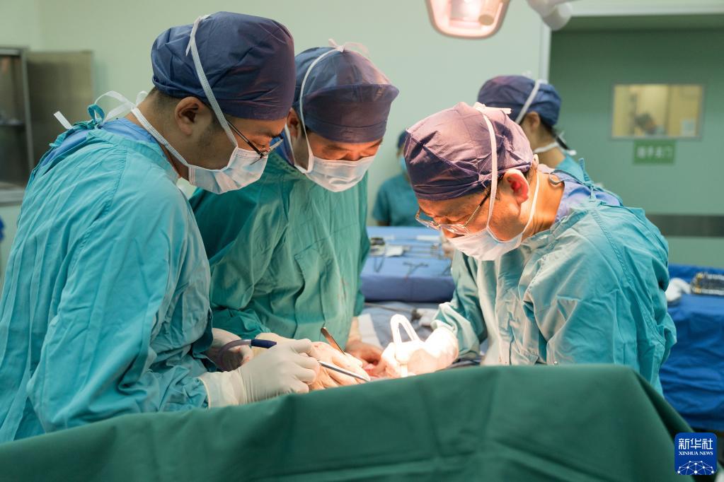 11月15日,在北京大學(xué)腫瘤醫院肝膽胰外一科手術(shù)室,治療團隊為沈建群進(jìn)行肝切除手術(shù)。