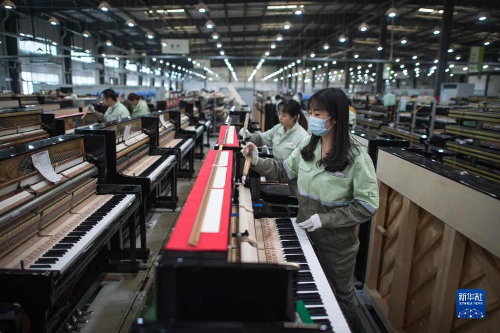 11月23日,工人在柏斯音樂(lè )集團宜昌鋼琴生產(chǎn)基地調試鋼琴。