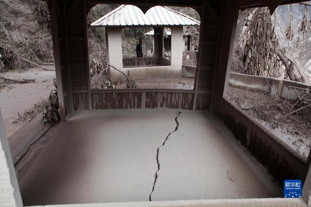這是12月5日在印度尼西亞爪哇島東部盧馬姜拍攝的被火山噴發(fā)物覆蓋的建筑。