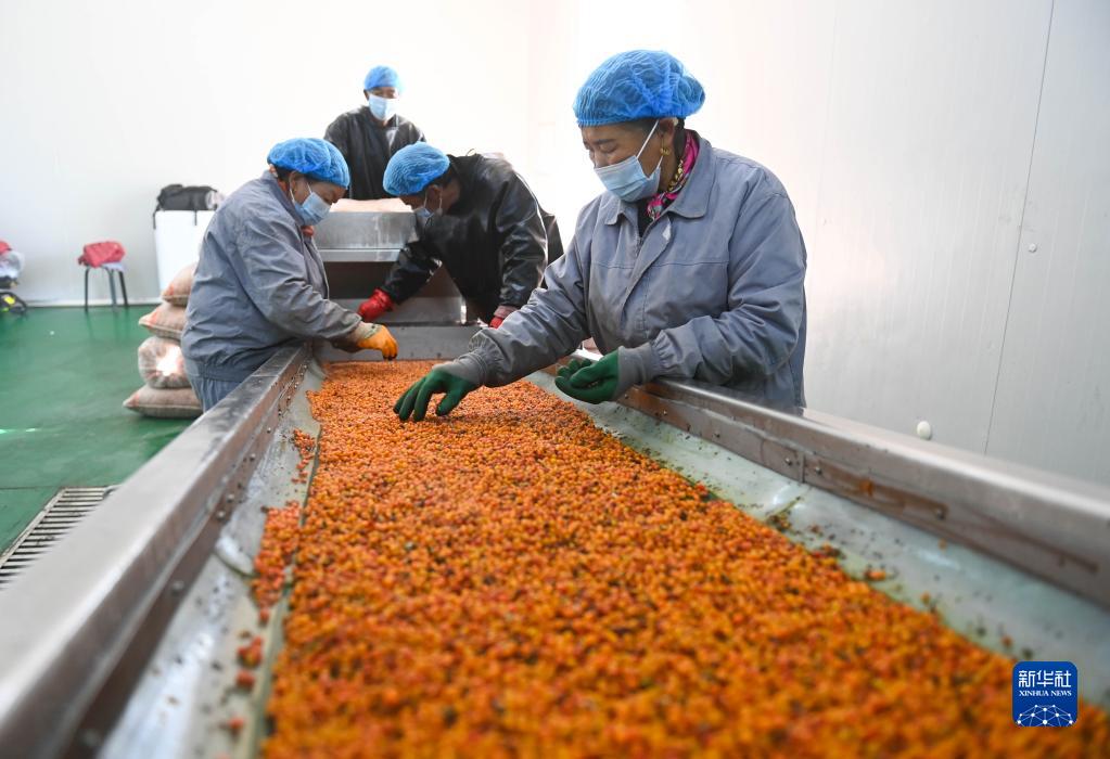 12月2日,在山西省嵐縣界河口鎮,合作社成員在清理沙棘果。新華社記者 柴婷 攝