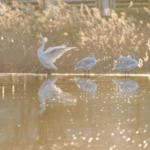 近日,一群天鵝在北京市密云區太師屯鎮清水河棲息覓食、嬉戲追逐,成為冬日里的美麗景觀(guān)。
