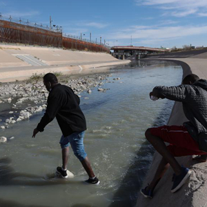 12月7日在墨西哥華雷斯城拍攝的照片顯示,移民試圖通過(guò)美墨邊境的布拉沃河進(jìn)入美國。