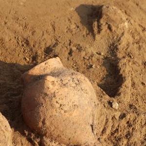 這是在位于河南省新鄭市的裴李崗遺址出土的陶壺(資料照片)。
