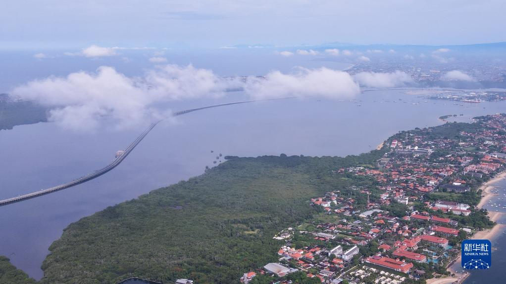 這是12月19日在印度尼西亞巴厘島拍攝的一座跨海大橋(無(wú)人機拍攝)。