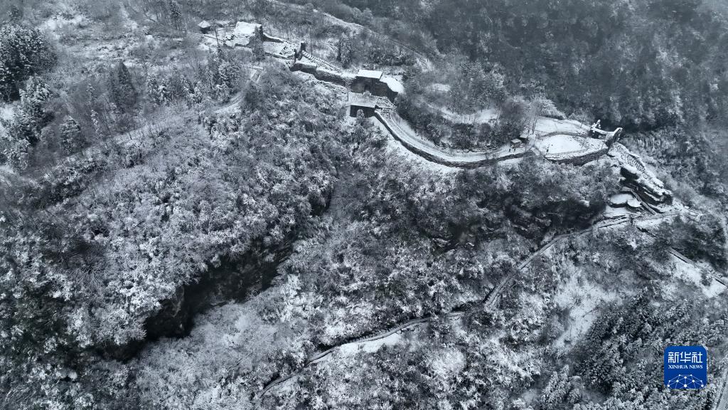 12月27日在貴州省遵義市海龍屯景區拍攝的雪景(無(wú)人機照片)。