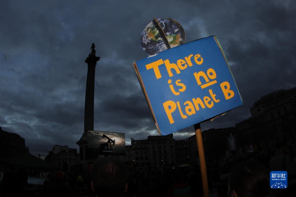2021年11月6日,人們在英國倫敦特拉法加廣場(chǎng)參加集會(huì ),號召為應對氣候變化采取更多行動(dòng)?!堵?lián)合國氣候變化框架公約》第二十六次締約方大會(huì )于2021年10月31日至11月13日在英國格拉斯哥舉行。