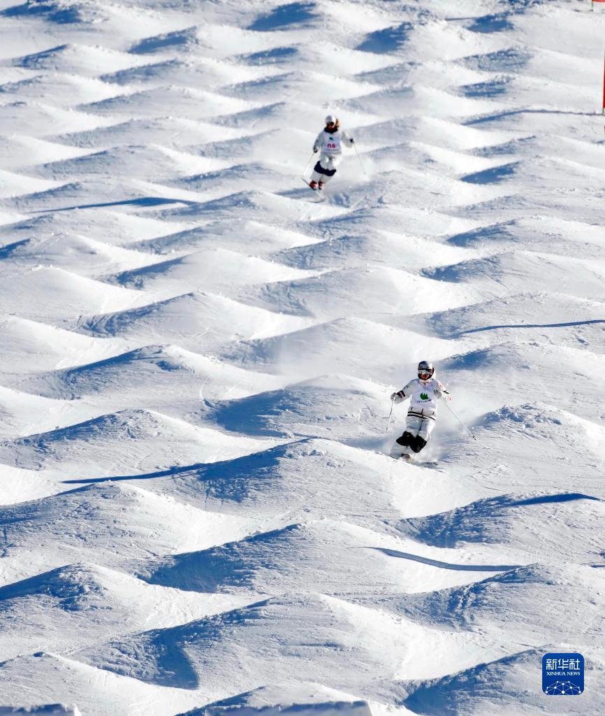 這是運動(dòng)員在張家口市崇禮區太舞滑雪場(chǎng)參加自由式滑雪雪上技巧比賽(2018年12月14日攝)。
