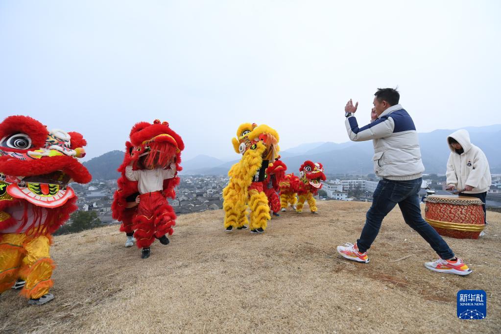 1月20日,在前童古鎮邊的小山上,童攀峰帶領(lǐng)舞獅隊進(jìn)行訓練。