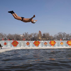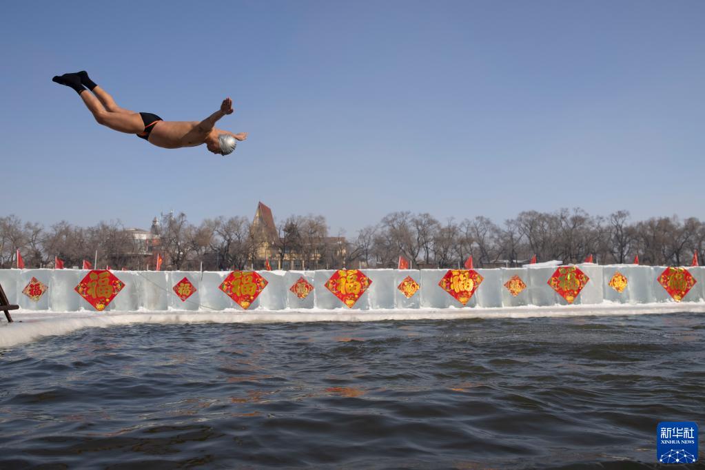 當日是除夕,哈爾濱市冬泳愛(ài)好者齊聚松花江,通過(guò)冬泳迎接新春佳節。