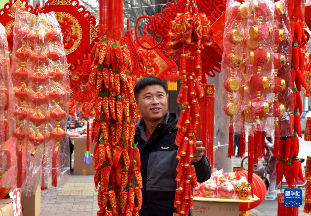 1月31日,在河北省邢臺市南和區的集貿市場(chǎng),宋建飛在采購春節飾品。