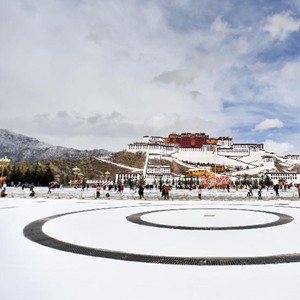 2月5日拍攝的雪后布達拉宮廣場(chǎng)。