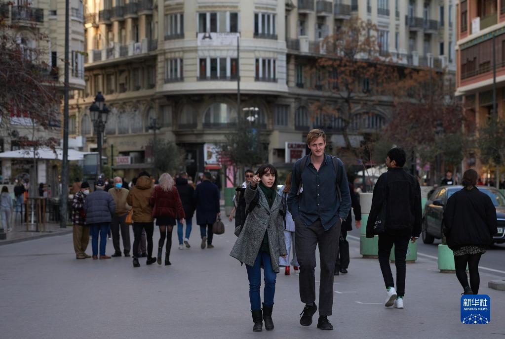 2月11日,人們走過(guò)西班牙巴倫西亞市中心。