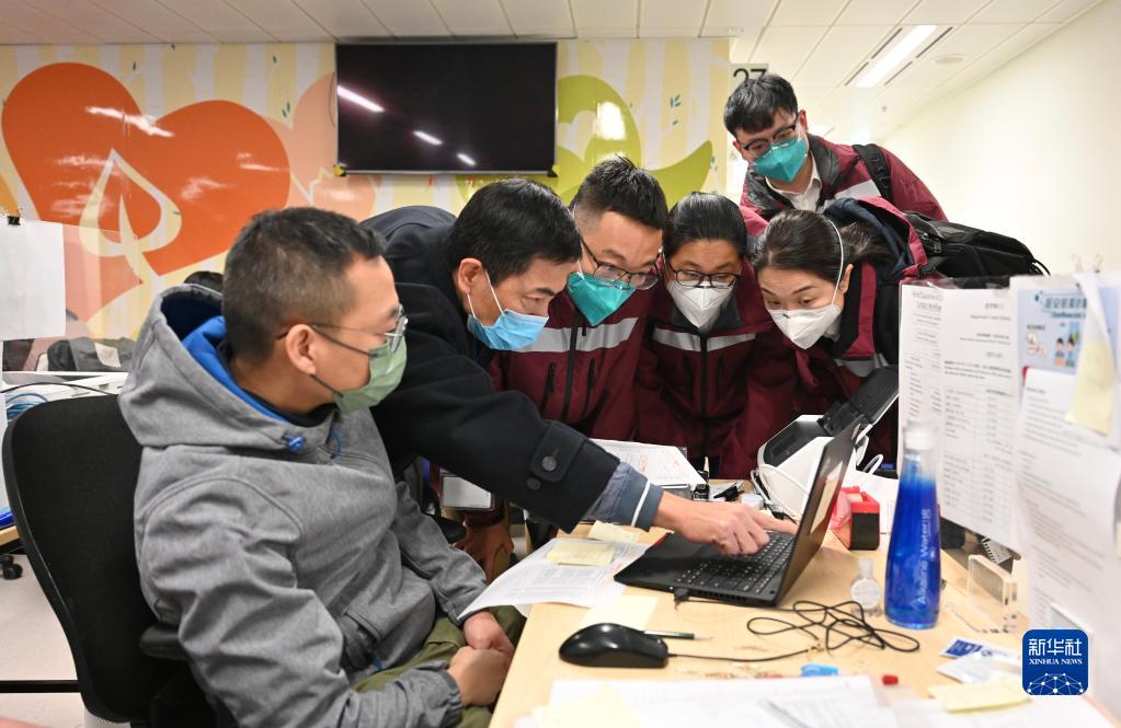 2月20日,內地專(zhuān)家組在特區政府衛生署代表陪同下到訪(fǎng)檢疫中心工作小組,了解特區政府在檢疫隔離方面的工作。新華社發(fā)