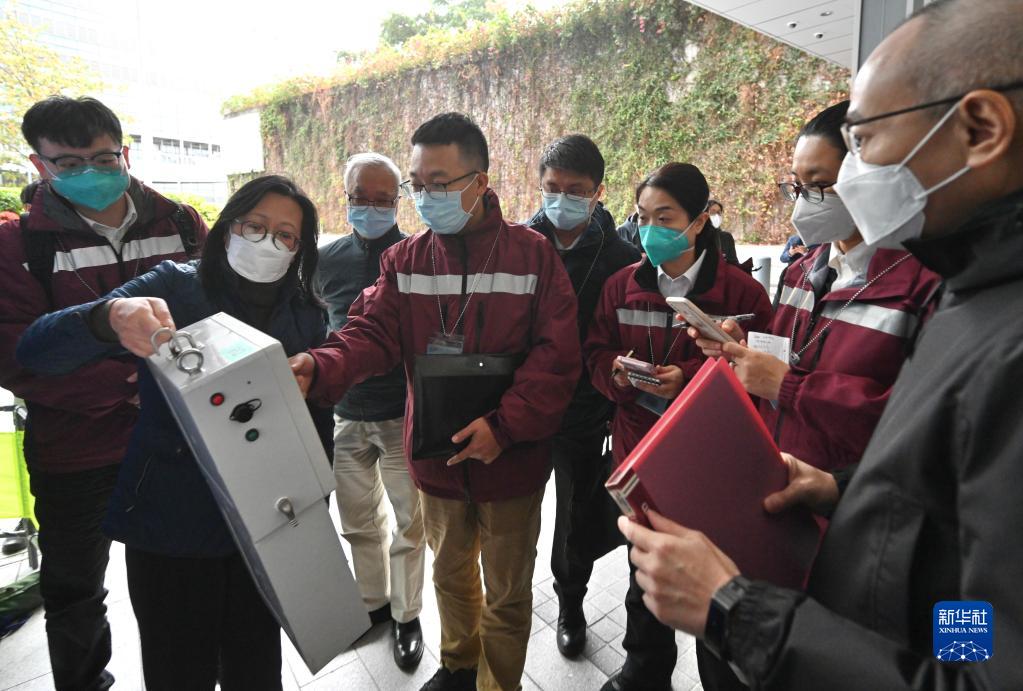 2月20日,特區政府渠務(wù)署在一個(gè)臨時(shí)監測站向內地專(zhuān)家組示范現場(chǎng)進(jìn)行抽取污水樣本的操作。新華社發(fā)