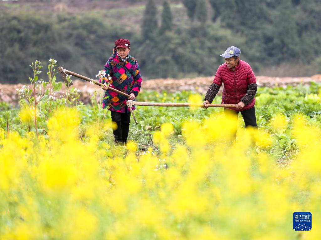 2月21日,村民在貴州省銅仁市玉屏侗族自治縣新店鎮洞坪村的地里勞作。