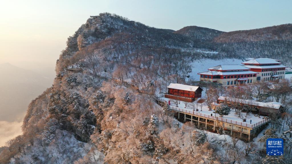2月21日拍攝的漢中市龍頭山景區雪景(無(wú)人機照片)。