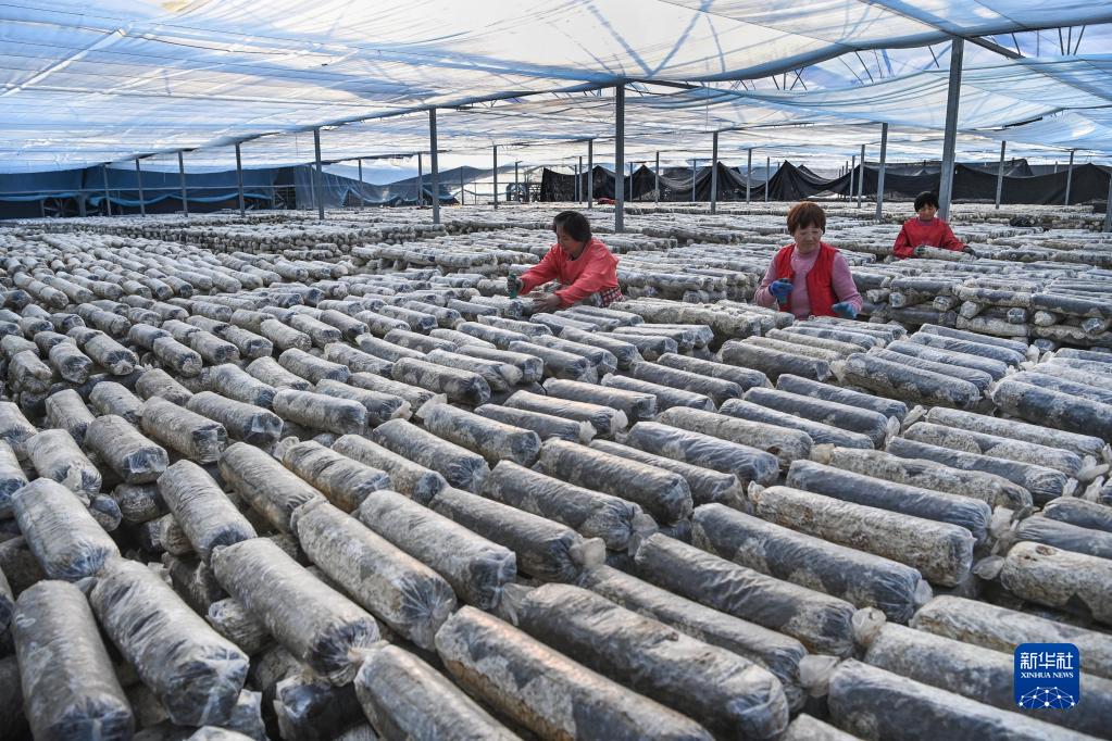 2月24日,留壩縣武關(guān)驛鎮一家農業(yè)科技公司的員工在為食用菌包增氧。