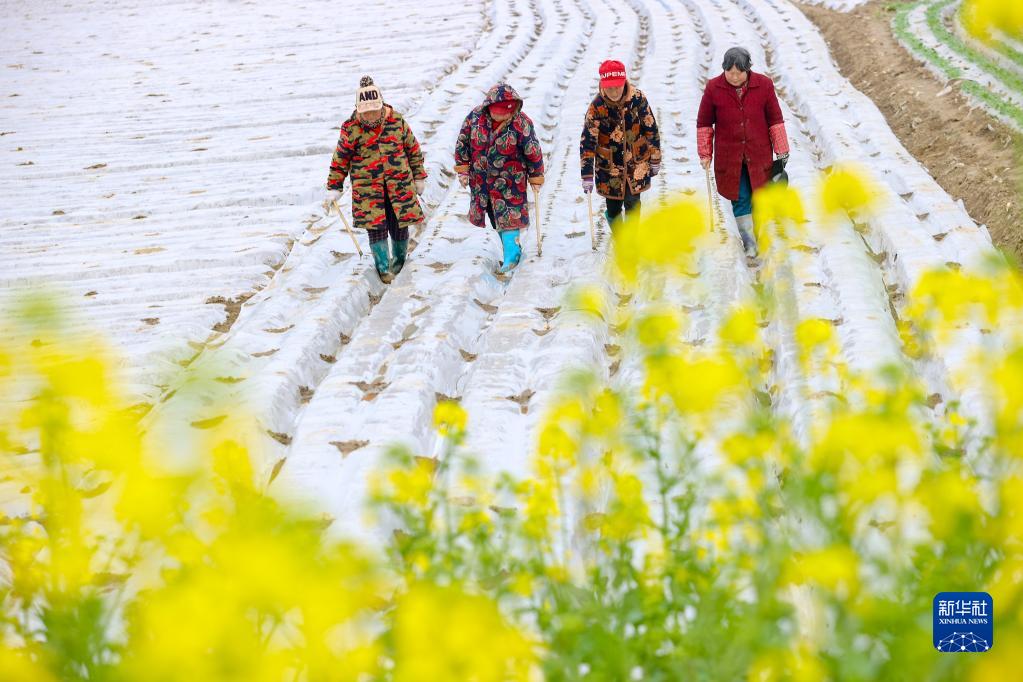 2月24日,村民正在四川省射洪市沱牌鎮桑樹(shù)林村地里勞作。