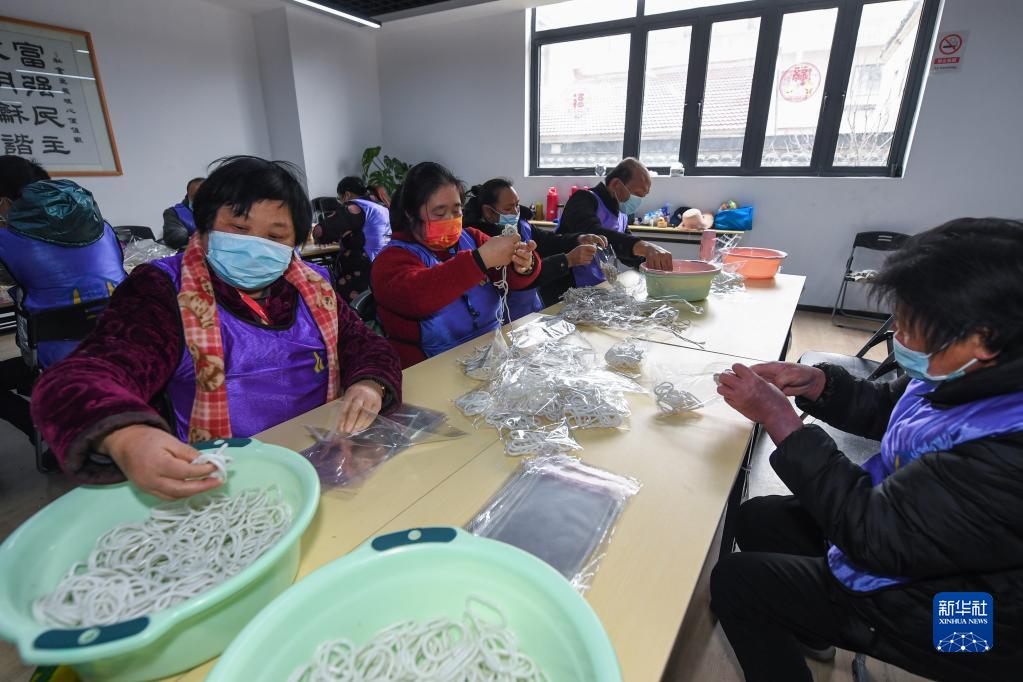 2月22日,在湖州市織里鎮港西村殘疾人之家,來(lái)自周邊的殘疾人(包括精神殘疾、智力殘疾和肢體殘疾)正在打包配件。完成工作后,他們可以獲得相應報酬和補貼。