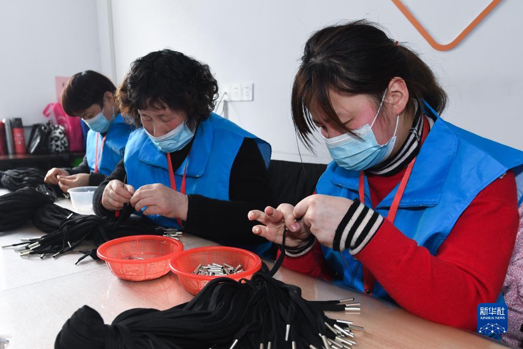 2月23日,在湖州市織里鎮晟舍村殘疾人之家,來(lái)自周邊的殘疾人(包括精神殘疾、智力殘疾和肢體殘疾)制作童裝輔料。完成訂單后,他們可以獲得相應報酬和補貼。