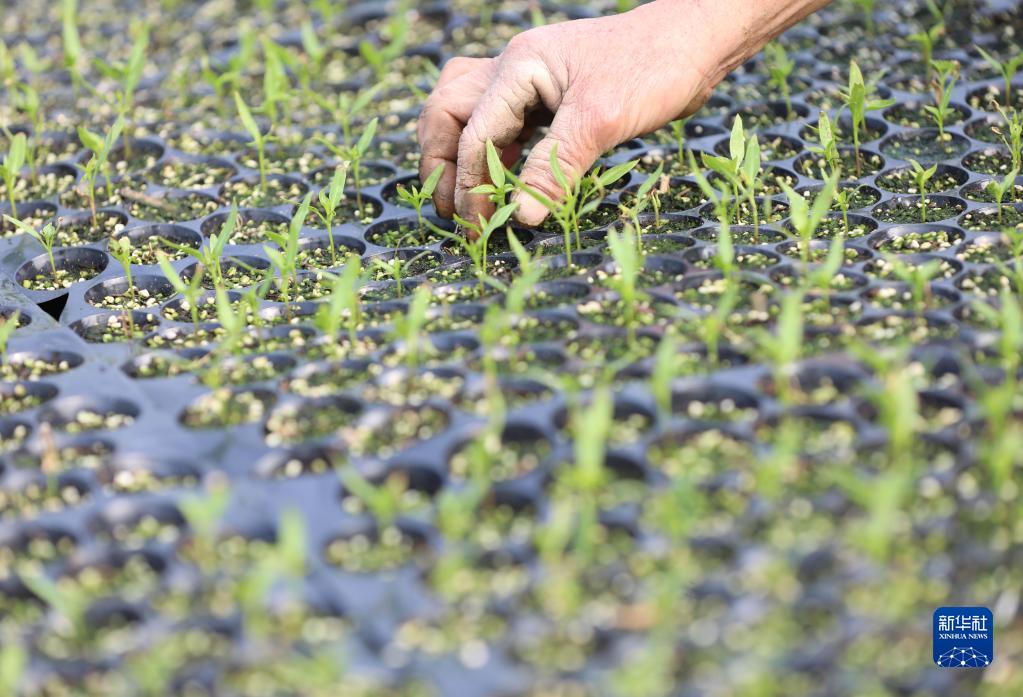 2月28日,在湖南省永州市道縣東門(mén)街道高車(chē)村育苗大棚,菜農在管護蔬菜苗。