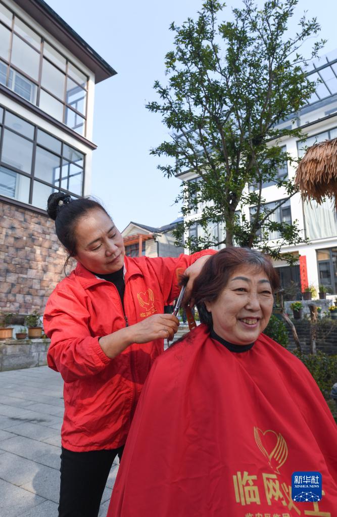 3月1日,昌化鎮“有禮昌化”流動(dòng)志愿服務(wù)站的志愿者在給白牛村村民提供免費理發(fā)服務(wù)。