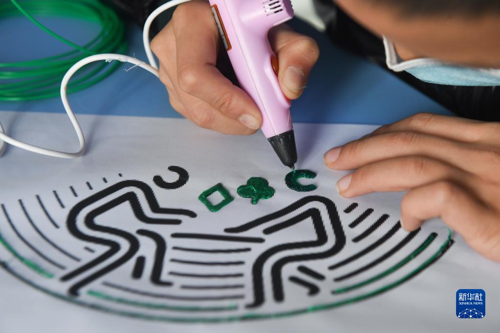 3月1日,城北小學(xué)學(xué)生學(xué)習用3D打印筆繪制立體圖案。