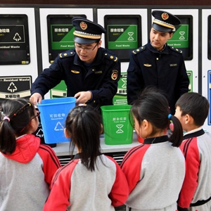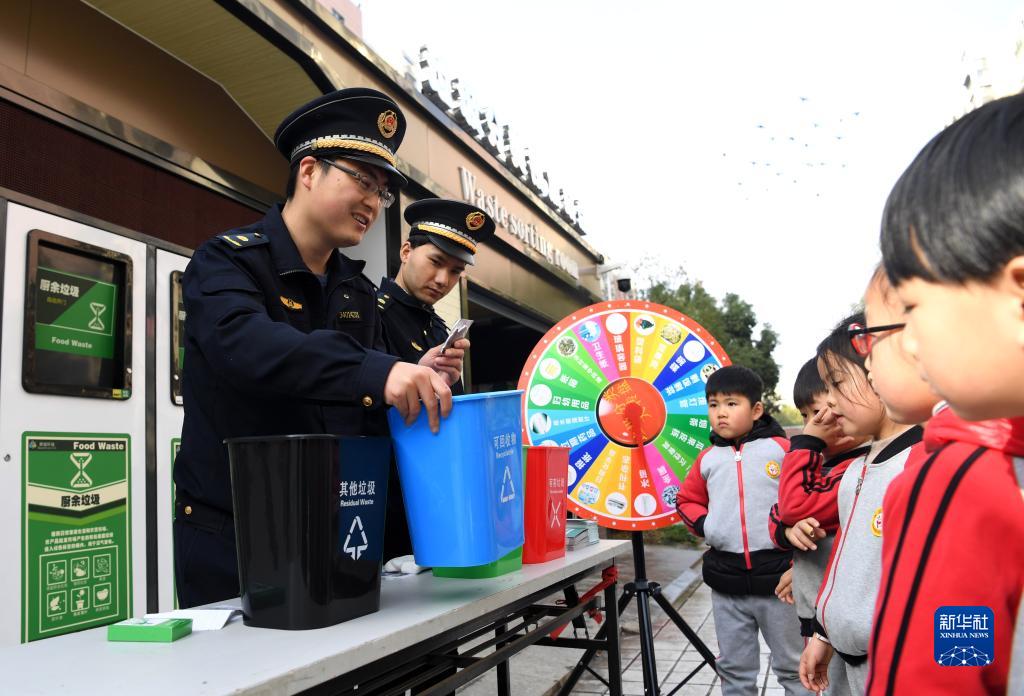 當日,安徽省合肥市包河區淝南社區在轄區垃圾分類(lèi)投放站開(kāi)展“垃圾分類(lèi) 從我做起”主題活動(dòng),通過(guò)垃圾分類(lèi)互動(dòng)游戲,向社區居民推廣生活垃圾定時(shí)定點(diǎn)分類(lèi)投放。