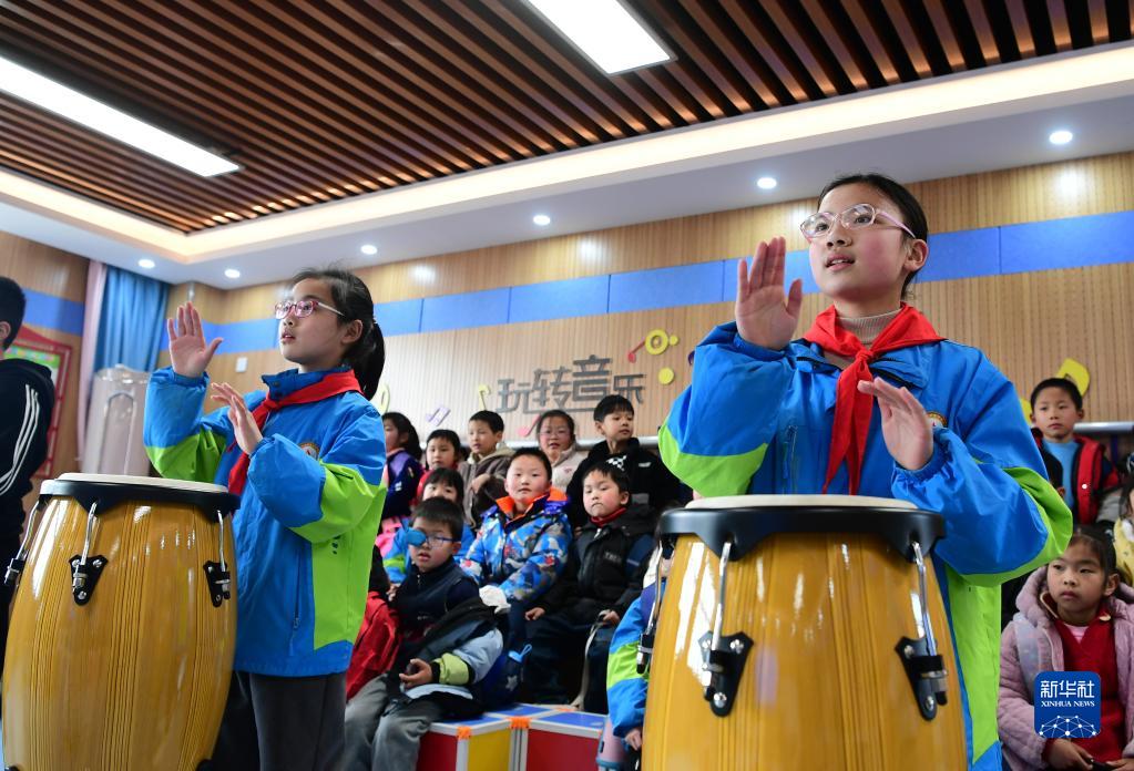 3月2日,在肥西縣嚴店中心學(xué)校少年宮,學(xué)生進(jìn)行樂(lè )器練習。