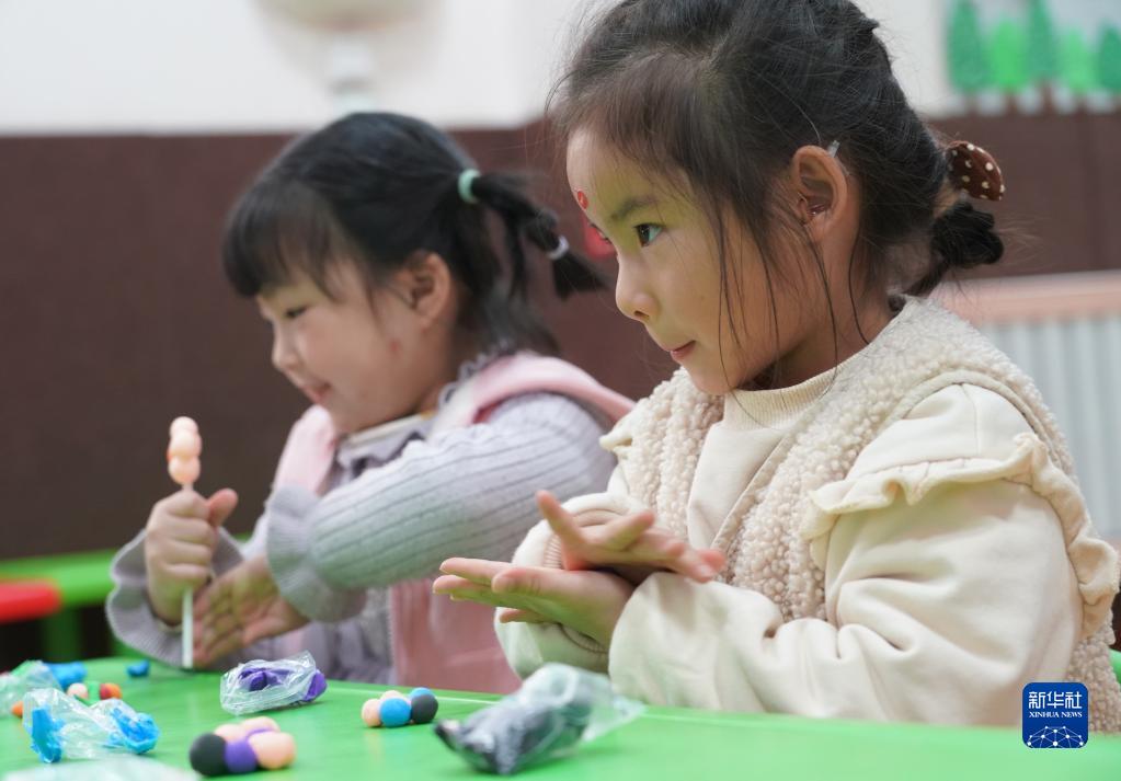 3月2日,在西安市蓮湖區愛(ài)爾堡幼兒園一間活動(dòng)室內,一名佩戴助聽(tīng)器的聽(tīng)障兒童與小伙伴一起玩耍。