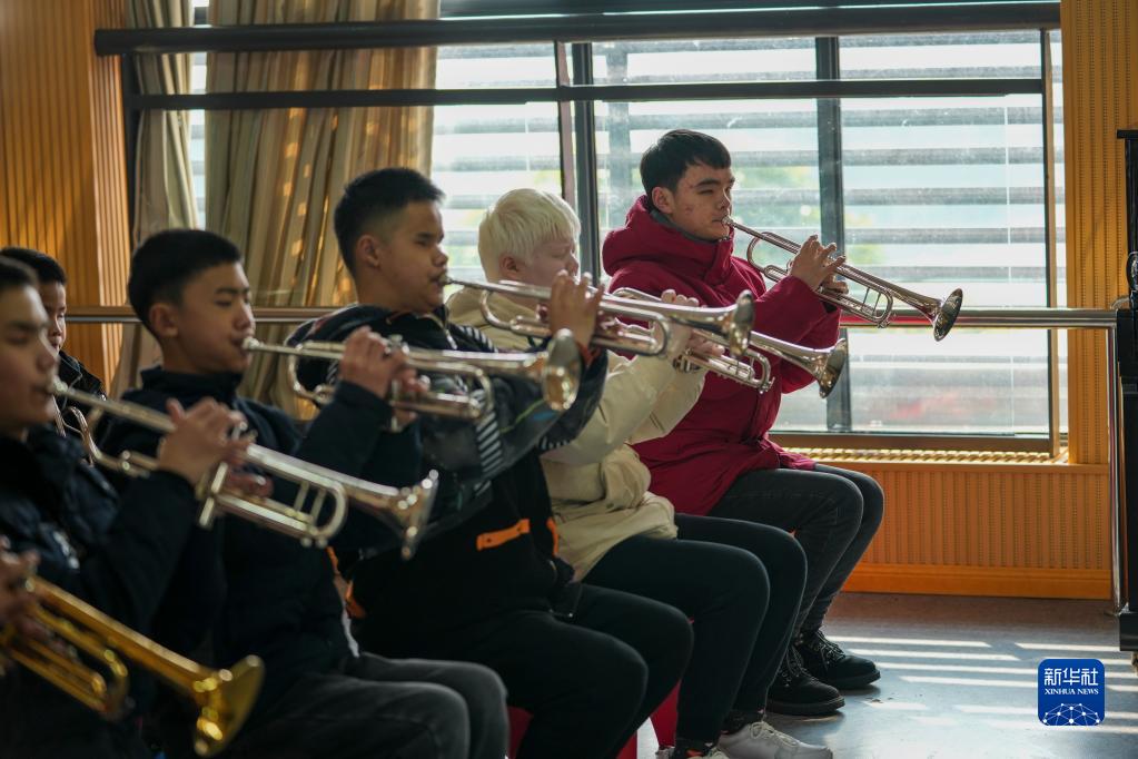 圖為在重慶市特殊教育中心的練習室內,揚帆管樂(lè )團的學(xué)生們在進(jìn)行練習(1月11日)。