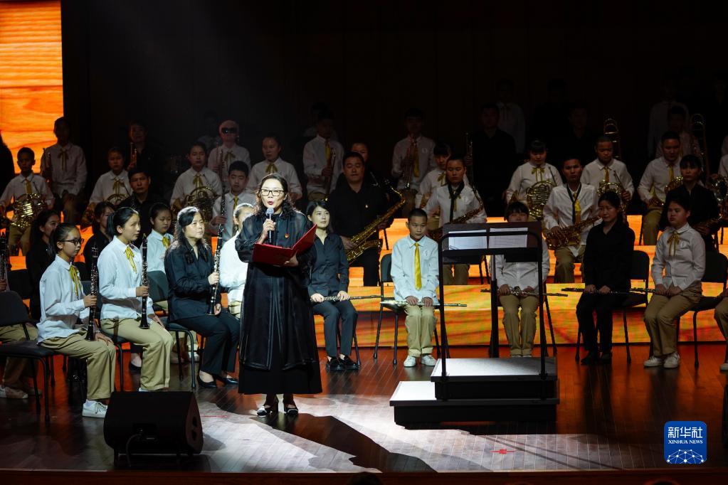 圖為在重慶市特殊教育中心《我們的國家》主題音樂(lè )黨課上,校長(cháng)李龍梅與揚帆管樂(lè )團的學(xué)生們一同表演(2021年5月15日攝)。