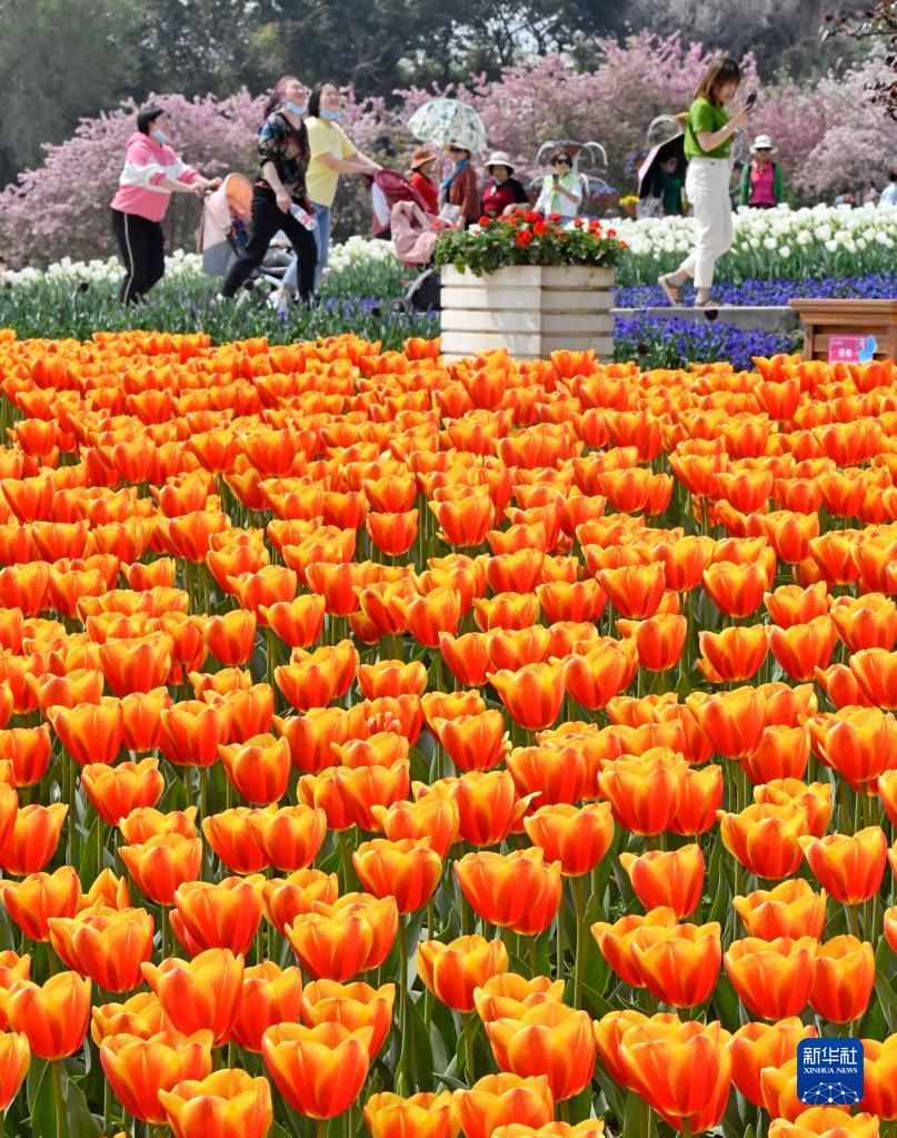 3月10日,人們在四川省成都市新都區的漫花莊園賞花。