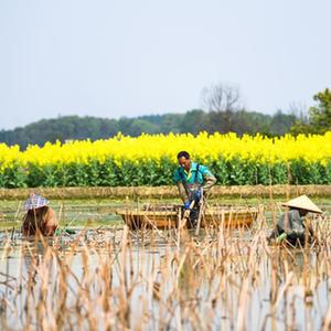 3月13日,在湖南省衡陽(yáng)市常寧市板橋鎮板橋村,藕農在采收蓮藕。