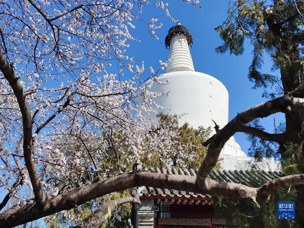 北京:山桃花開(kāi)映白塔
