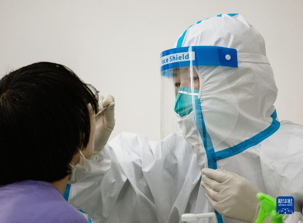 3月14日,香花橋街道社區衛生服務(wù)中心的醫務(wù)人員在為某高校的學(xué)生進(jìn)行核酸采樣。