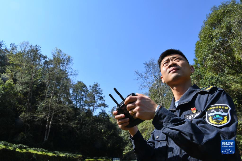 3月15日,武夷山國家公園執法人員在使用無(wú)人機進(jìn)行高空巡護。
