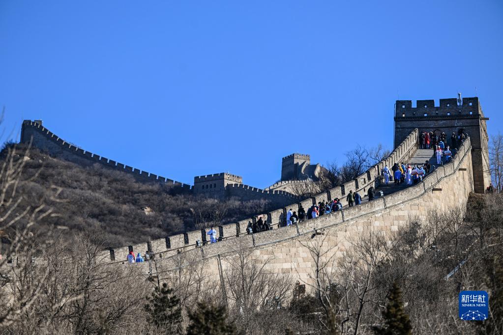 這是北京2022年冬奧會(huì )火炬在八達嶺長(cháng)城傳遞(2022年2月3日攝)。