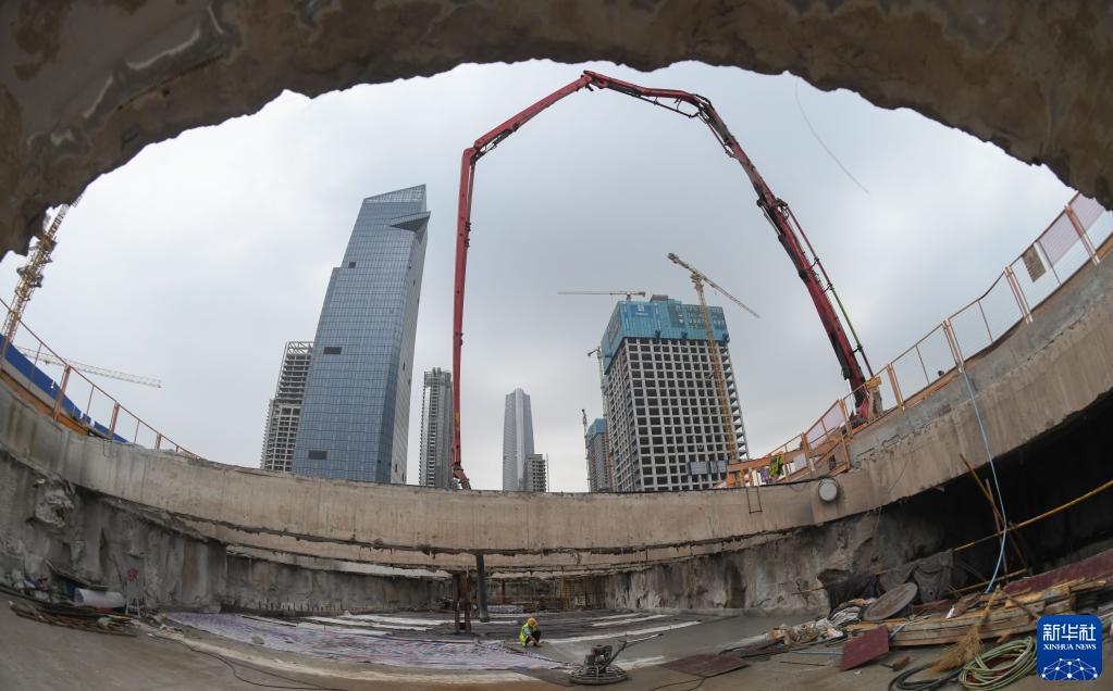 3月16日,大型機械在武漢市武昌濱江核心區地下空間環(huán)路工程工地施工。