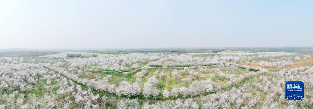 這是3月16日在安徽省合肥市蜀山區小廟鎮一個(gè)農場(chǎng)拍攝的櫻花(無(wú)人機照片)。