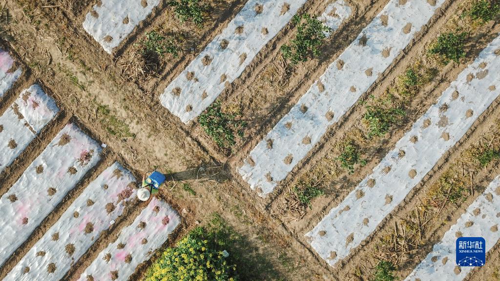 在常德市石門(mén)縣葉家坪村,葉金娥在田間忙碌(3月15日攝,無(wú)人機照片)。