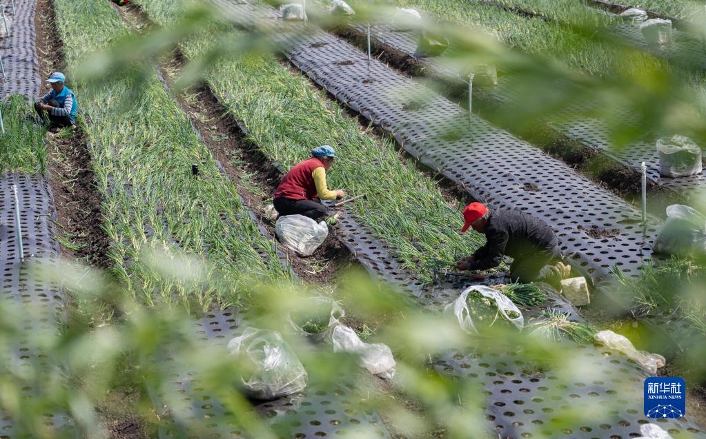 3月21日,農民在魯甸縣卯家灣安置區香蔥產(chǎn)業(yè)基地內勞作。
