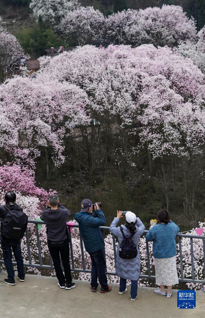 目前正是四川省江油市大康鎮戴天山村的辛夷花盛開(kāi)的季節。這里的辛夷花在群山環(huán)抱中綿延數十里,呈現出一派世外桃源的景象,吸引游人前來(lái)踏青賞花。當地的農家樂(lè )旅游接待、土特產(chǎn)銷(xiāo)售等“花經(jīng)濟”,促進(jìn)了村民們增產(chǎn)增收。