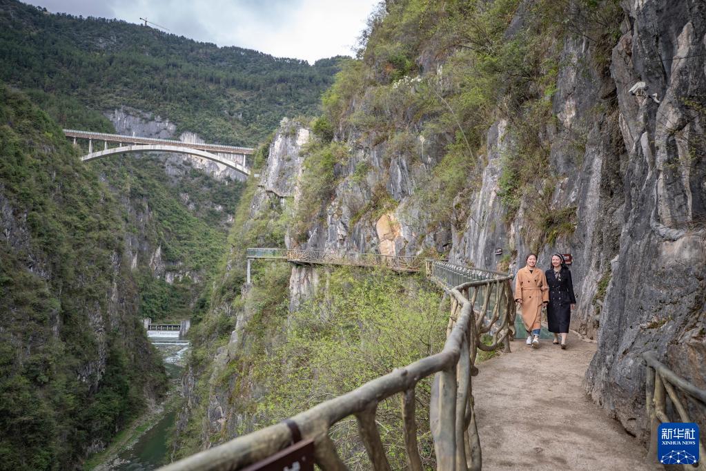 3月22日,游客在重慶市黔江區城市大峽谷景區內參觀(guān)游玩。