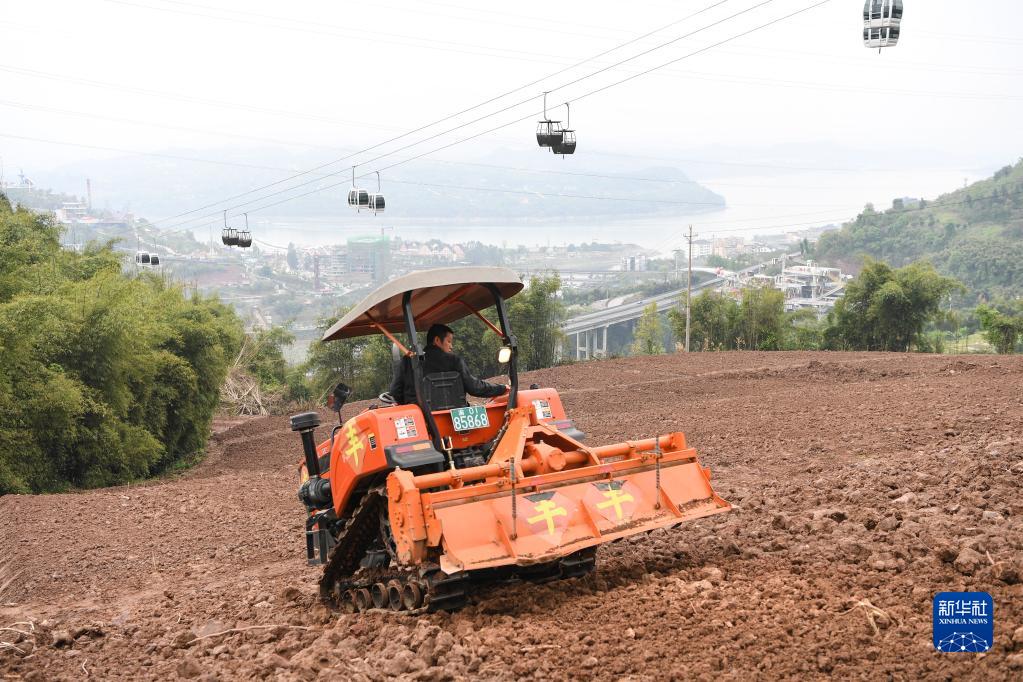 3月23日,在重慶涪陵美心紅酒小鎮泡桐村生態(tài)農業(yè)旅游示范區,村民在葡萄種植基地內駕駛農業(yè)機械勞作。