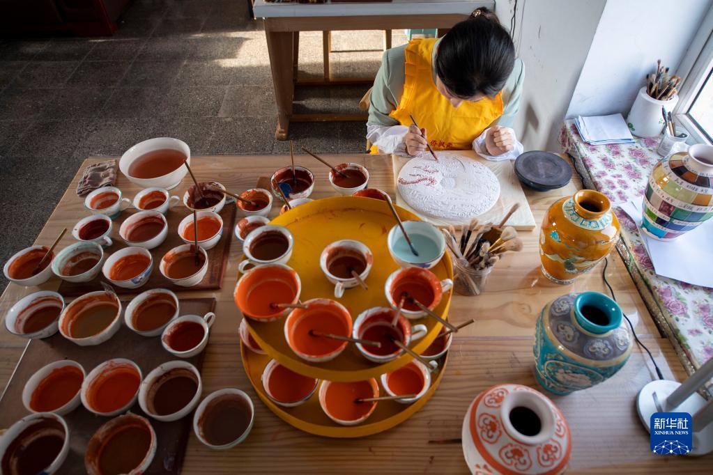 3月23日,在山西省陽(yáng)城縣沙坡村,喬琳在制作琺華。新華社記者 楊晨光 攝